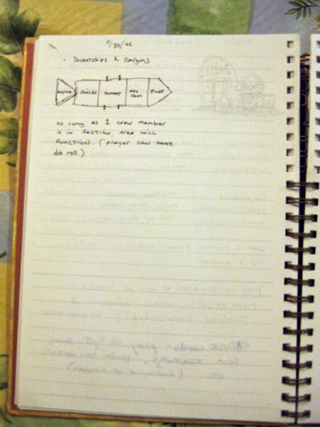 The first indication of anything pertaining to Rayguns and Rocketships was a small diagram from my 2006 notebook. All it mentions is that a crew man needs to stay in a spot on the ship to get a benefit. Not much, but it was a start.